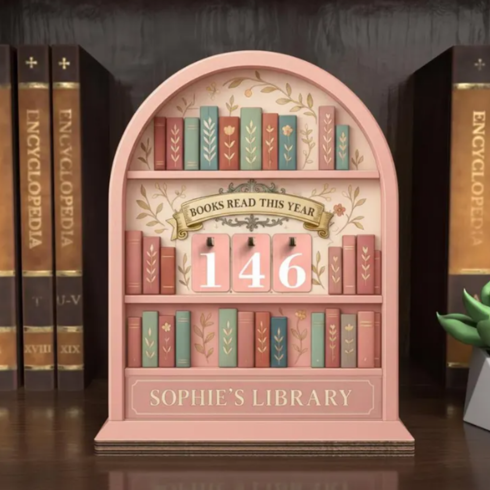 A reading tracker is such a fun and thoughtful gift for book lovers because it turns finishing a book into something you can actually see and celebrate. This wooden bookshelf-style “Books Read This Year” tracker with flip number tiles and a personalized library name lets readers update their progress as they go, making each finished book feel like a small milestone toward their yearly reading goal. It’s not only practical for tracking how many books have been read, but it also doubles as a charming decor piece that looks beautiful on a bookshelf, desk, or cozy reading nook. Since it can be personalized and comes in multiple sizes and colors, it feels a little more special and tailored to the reader, making it a unique gift that adds both personality and motivation to their reading routine.
