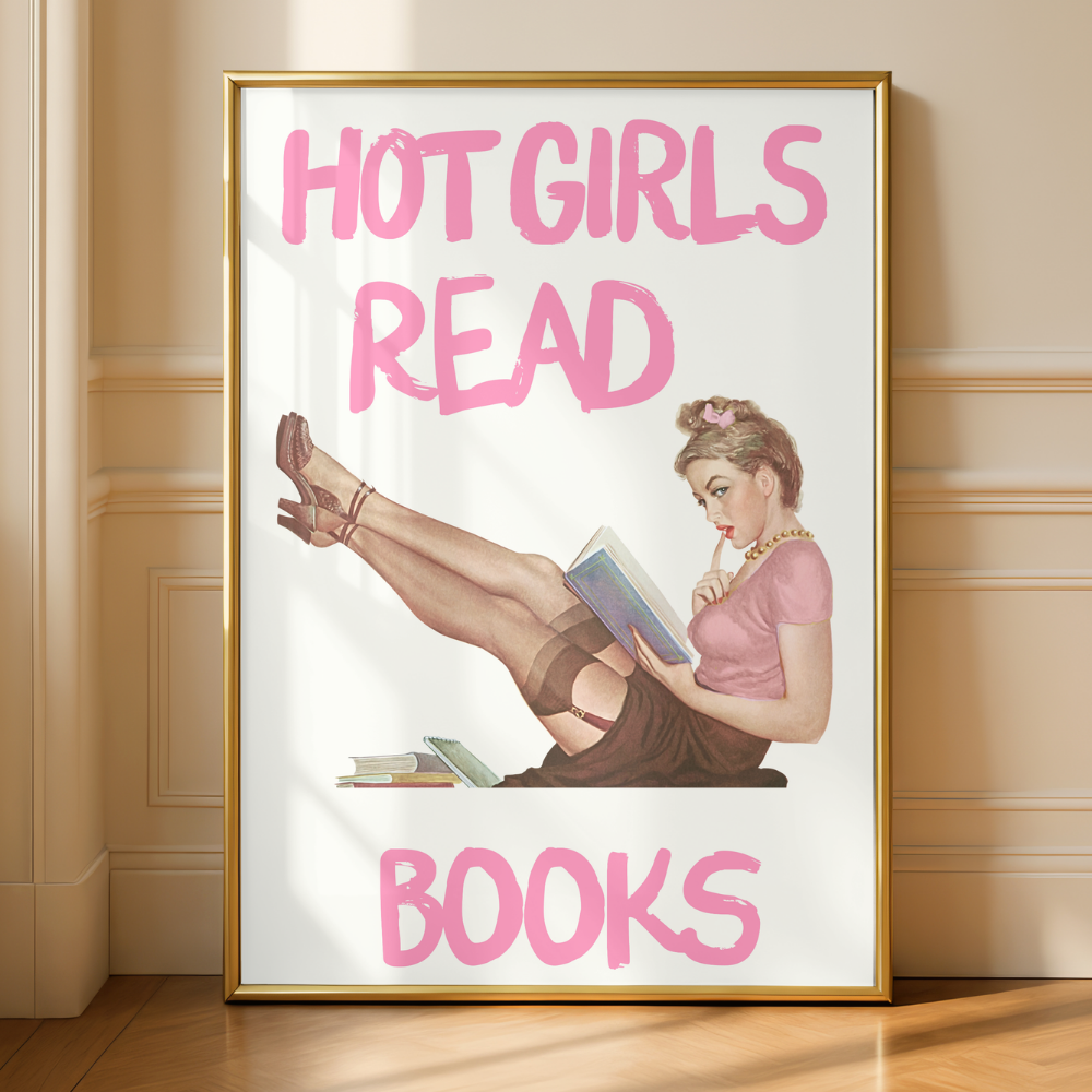 Wall art is a great gift for book lovers. Many readers love decorating their bedrooms, bookshelves, or reading nooks with pieces that reflect their love for books and their personality as a reader. This retro-inspired art print featuring a woman reading with bold pink “Hot Girls Read Books” lettering adds a playful and confident touch while celebrating the idea that hot girls love reading too. It fits perfectly into a cozy reading corner, home library, dorm room, or gallery wall, and since it comes in multiple sizes, it can work as a small decorative accent or a statement piece. It’s a fun and stylish gift that blends feminine energy, bookish culture, and aesthetic decor for readers who proudly embrace their love of books.