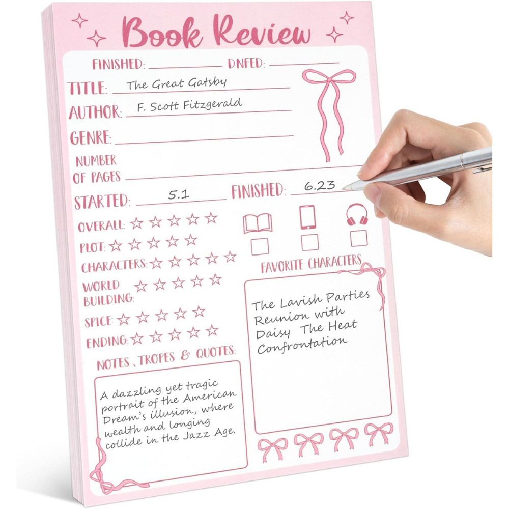 Whether it’s rating the story, jotting down favorite quotes, or remembering the plot months later, keeping track of what you read has become a huge part of book culture. That’s why a book review notepad makes such a thoughtful gift for book lovers. It gives readers a simple place to capture their thoughts after finishing a novel, whether they’re documenting their yearly reading goals, organizing notes for a book club, or saving reactions they want to remember later.