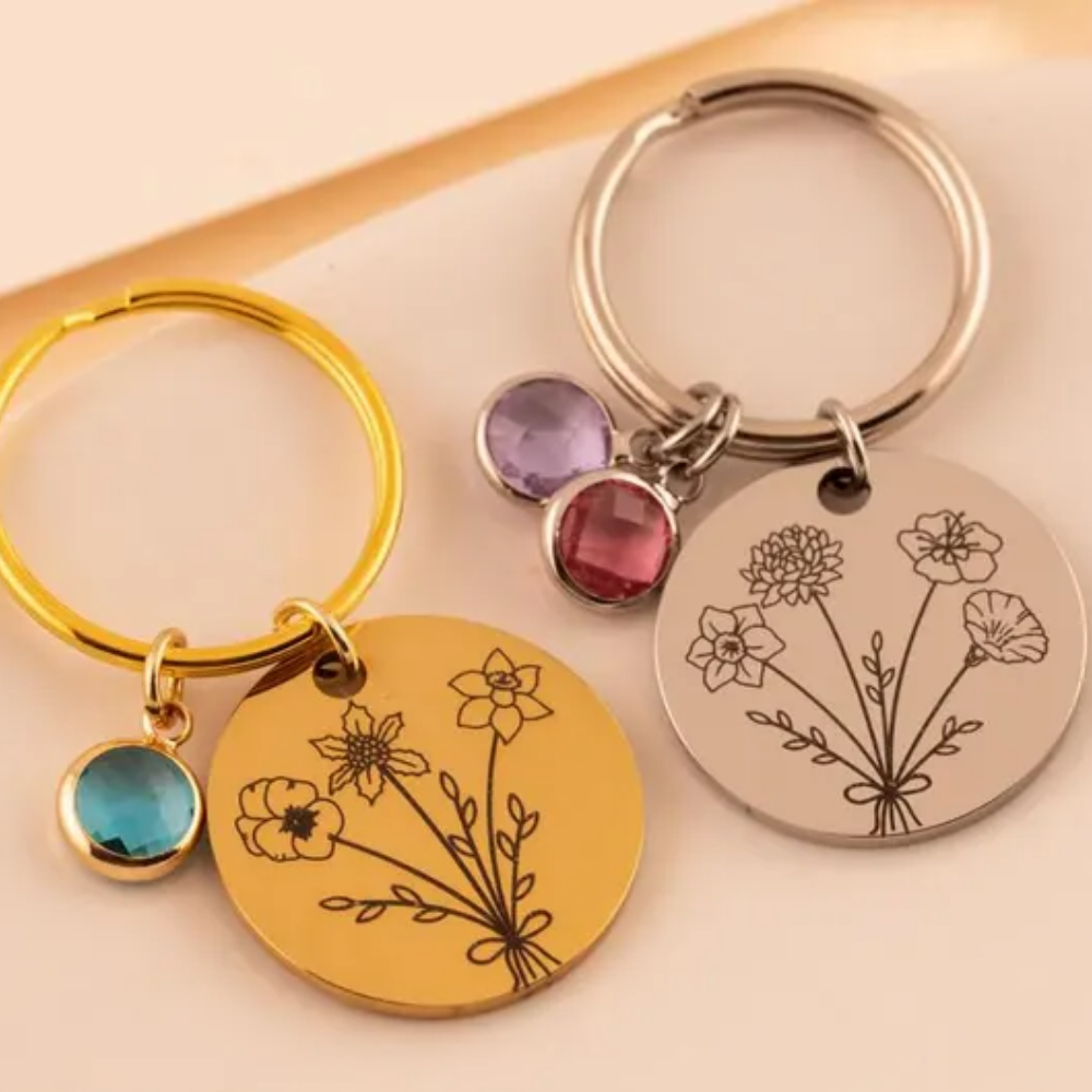 I also love the idea of giving something small that your mom can carry with her every day, and this personalized birthstone flower keychain feels like such a sweet option. It features a polished round metal disc engraved with delicate flowers and a small birthstone charm attached to a sturdy keyring, available in gold or silver finishes. What makes it so special is the meaning behind it—each birthstone can represent someone in the family, turning a simple everyday item into a little reminder of the people she loves most. It’s thoughtful, personal, and practical all at once
