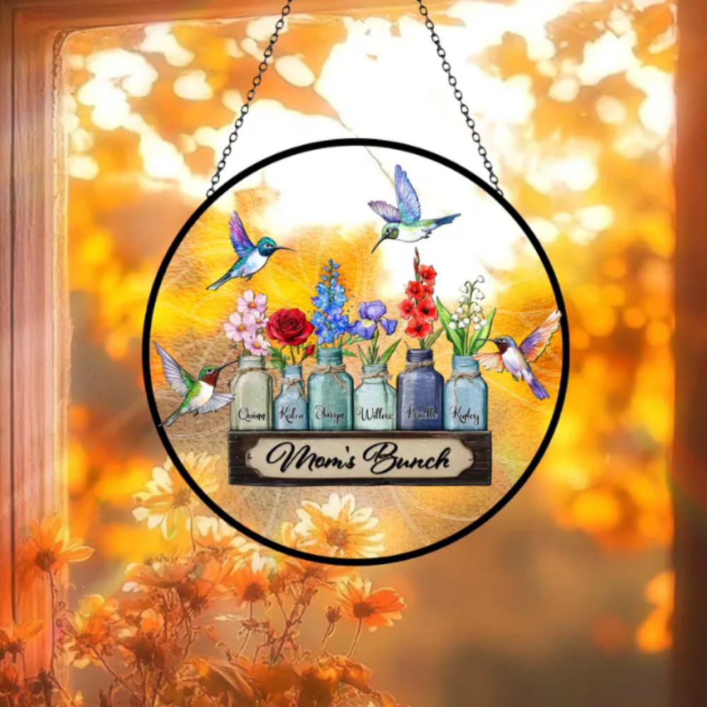 One gift idea that immediately caught my eye is this personalized birth flower suncatcher. It features delicate birth month flowers arranged in mason jars with hummingbirds, all displayed on a round glass-style panel that hangs in the window from a simple chain. I love gifts that feel meaningful without being overly complicated, and this one does that beautifully. Each flower represents a family member, which makes it feel like a small visual reminder of the people she loves most. It’s the kind of piece that can hang in a sunny window and quietly brighten up the room every day, which is why I think it makes such a thoughtful Mother’s Day gift. It’s personal, sentimental, and decorative all at the same time—something she can actually display and enjoy rather than tuck away in a drawer.