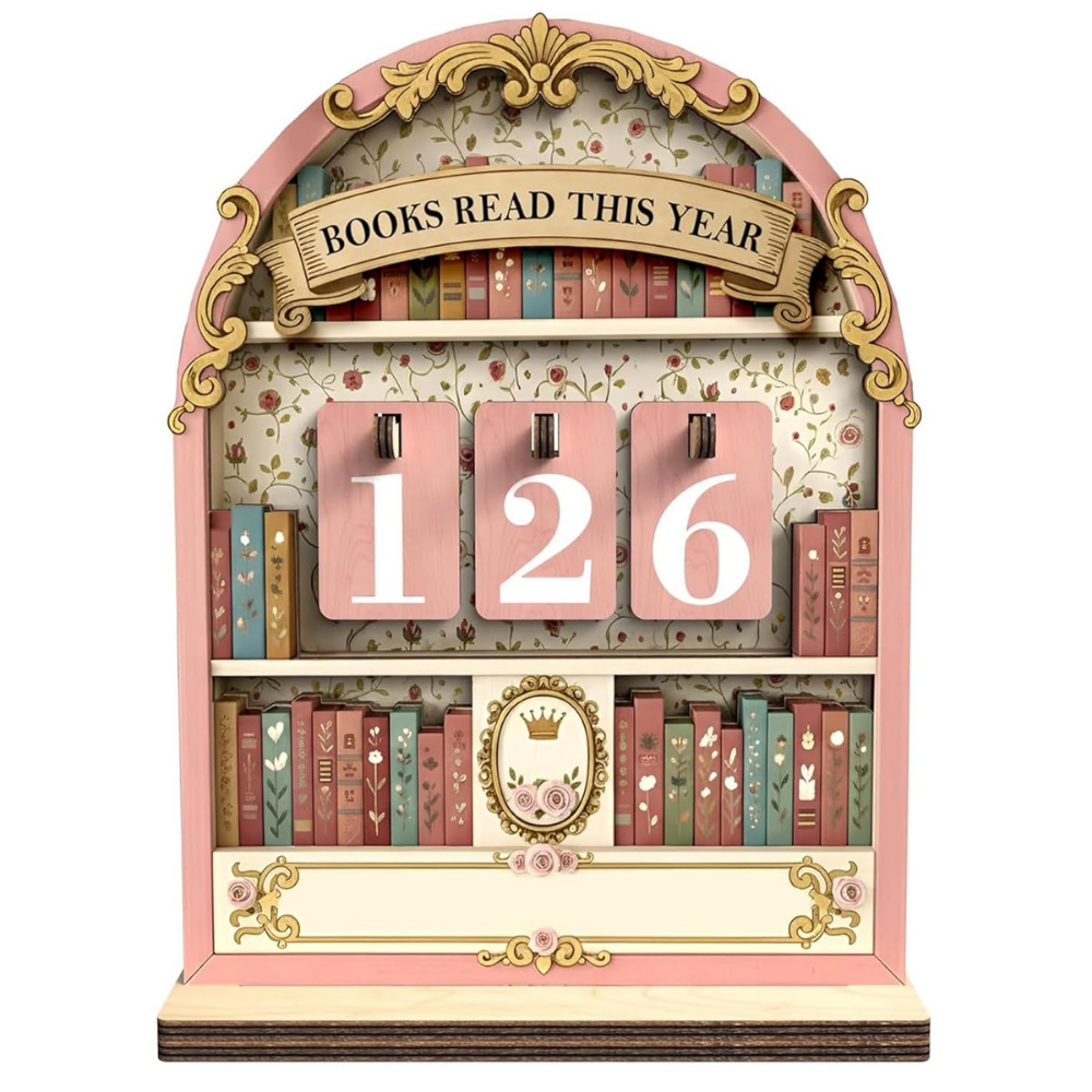 This “Books Read This Year” wooden counter lets the reader log each finished title and stay motivated toward their yearly goal with a simple slide-style tracker, so it feels like a little celebration every time they finish a book. The warm, retro-inspired wood adds cozy reading-nook vibes so it doubles as minimalist décor.